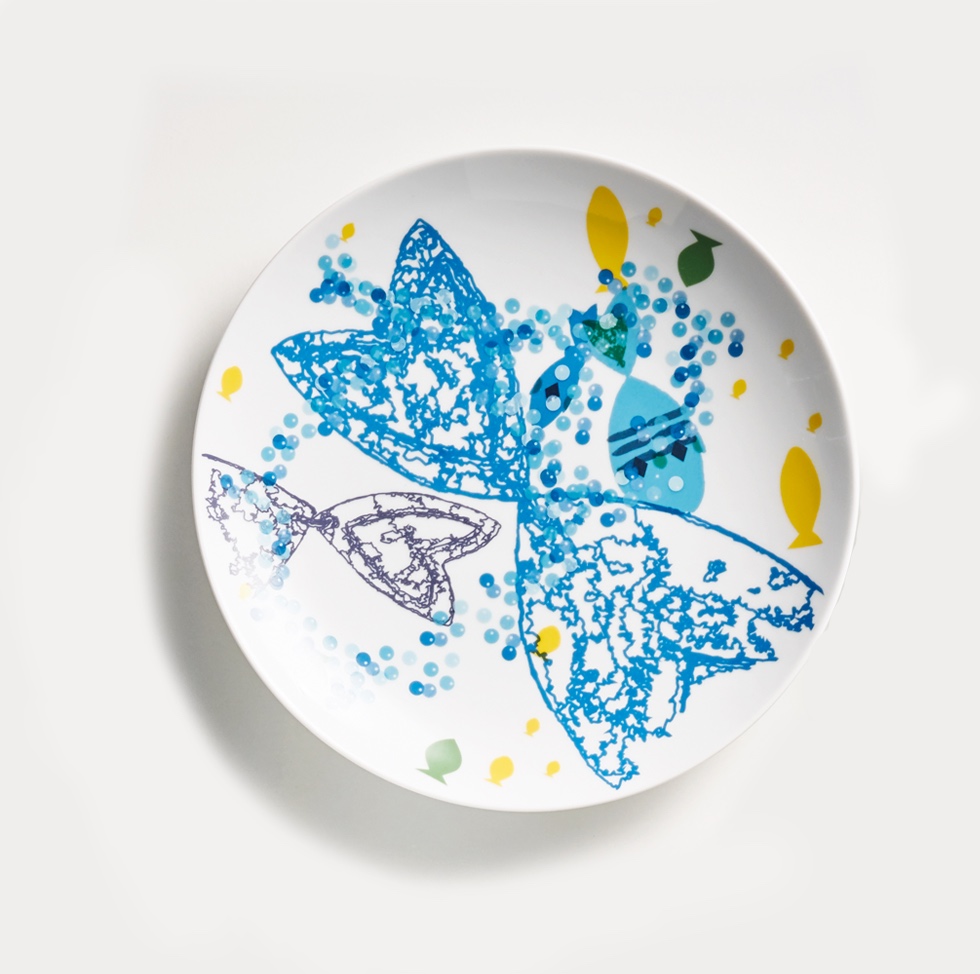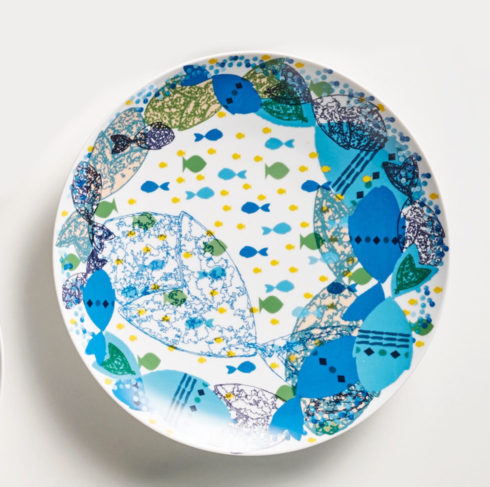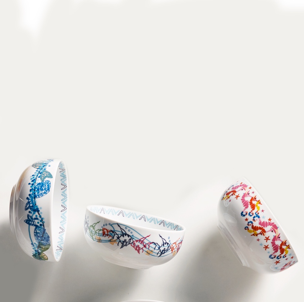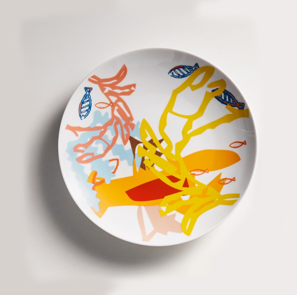 A areia quente, o prateado do peixe e o mar foram a fonte de inspiração para o conjunto de mesa que convida a uma refeição ao ar livre.